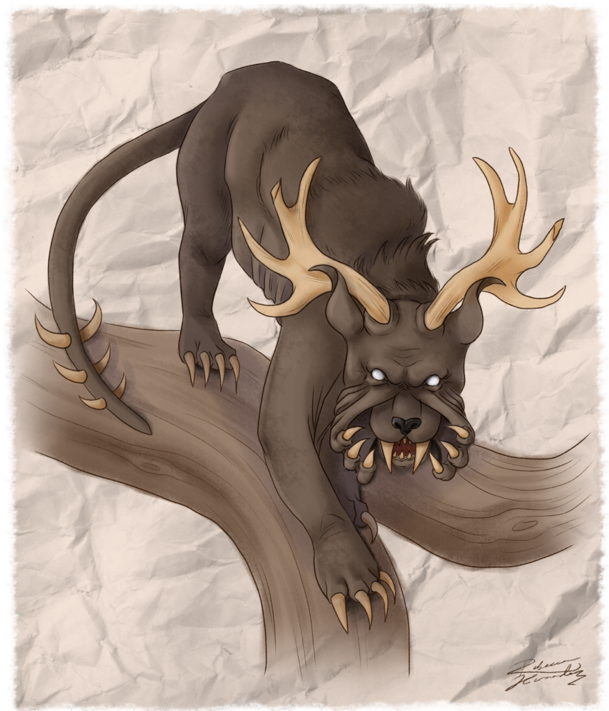 Älgpantern är som namnet säger en korsning mellan älg och panter, där panterns gener bidragit med smidighet, muskelmassa och jaktinstinkt medan älgens stått för storlek och huvudkrona.